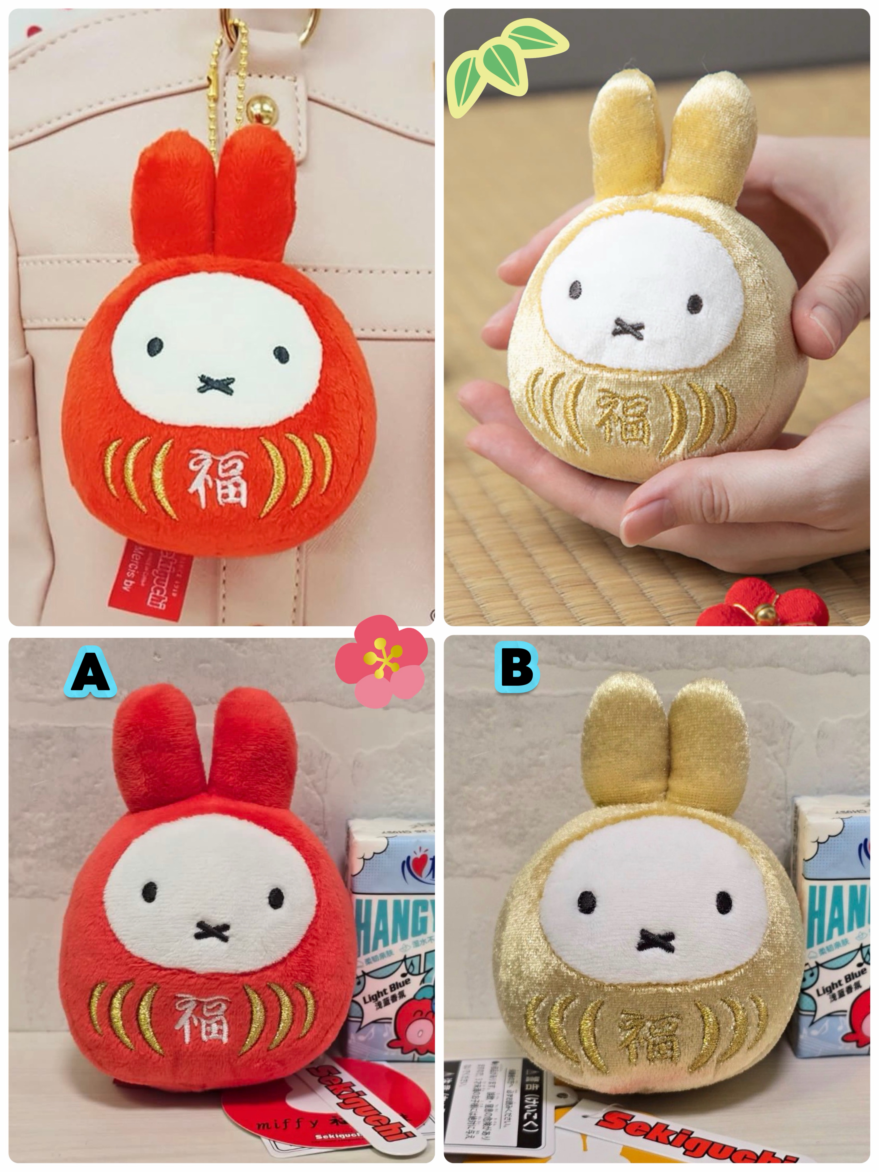 《虎舅現貨玩具精品專區》 ☆現貨☆日本直送招福開運達磨 Miffy兔公仔吊飾 共2款: A:紅色達磨 HK$140/個 B:金色達磨 HK$180/個 尺寸:約12x8x7cm 備註: ❗️順豐到付 (順豐現時做緊店到店優惠,詳情歡迎向我哋或順豐查詢) 如欲在網站購買,可到: https://www.torameheya.store/i/THx5trgAA