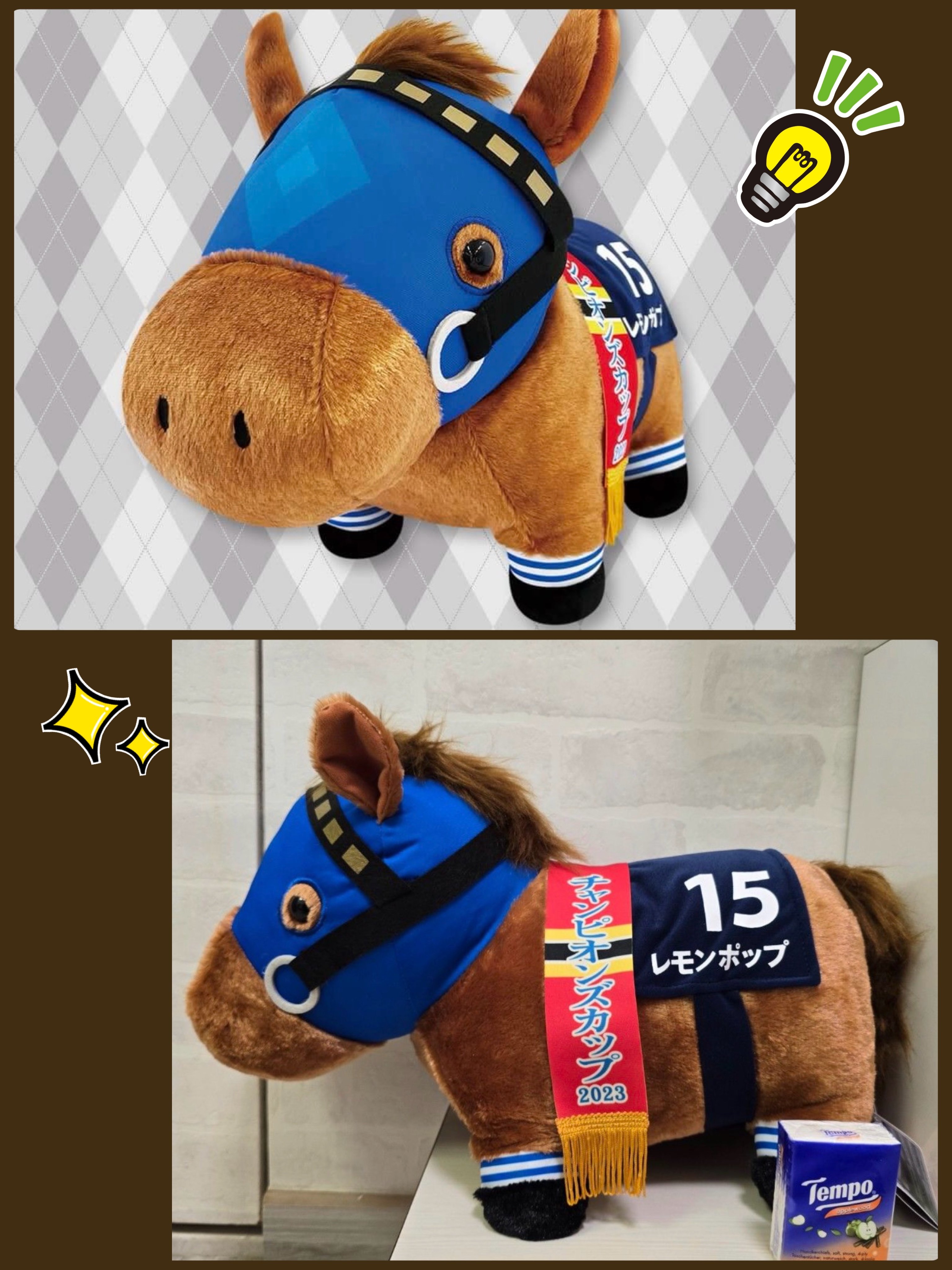 《虎舅現貨玩具精品專區》 ☆現貨☆日本直送 JRA日本競馬冠軍馬清爽口味 Lemon Pop (レモンポップ)公仔 HK$90/隻 尺寸:約35x18x45cm 備註: ❗️順豐到付 (順豐現時做緊店到店優惠,詳情歡迎向我哋或順豐查詢) 如欲在網站購買,可到: https://www.torameheya.store/i/ReExXrgAA