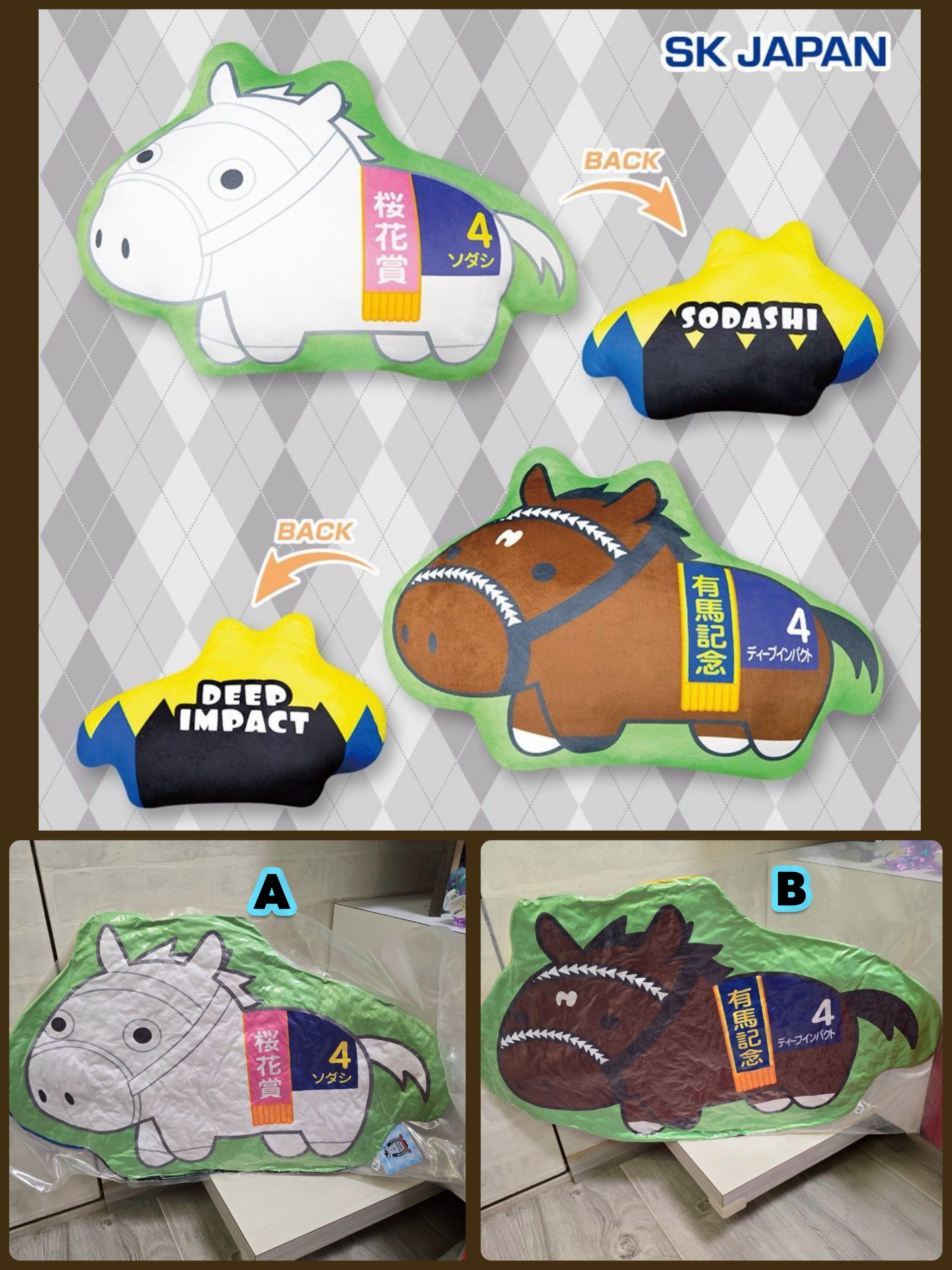 《虎舅現貨玩具精品專區》 ☆現貨☆日本直送 JRA日本競馬冠軍馬cushion咕𠱸 共2款: A:櫻花賞 純淨之輝 Sodashi ソダシ (白色) HK$118/個 B:有馬紀念 大震撼 Deep Impact ディープインパクト(啡色) HK$108/個 尺寸:約43x62x10cm 備註: ❗️順豐到付 (順豐現時做緊店到店優惠,詳情歡迎向我哋或順豐查詢) ❗️咕𠱸以原裝膠袋壓縮包裝 如欲在網站購買,可到: https://www.torameheya.store/i/RZaa7rgAA