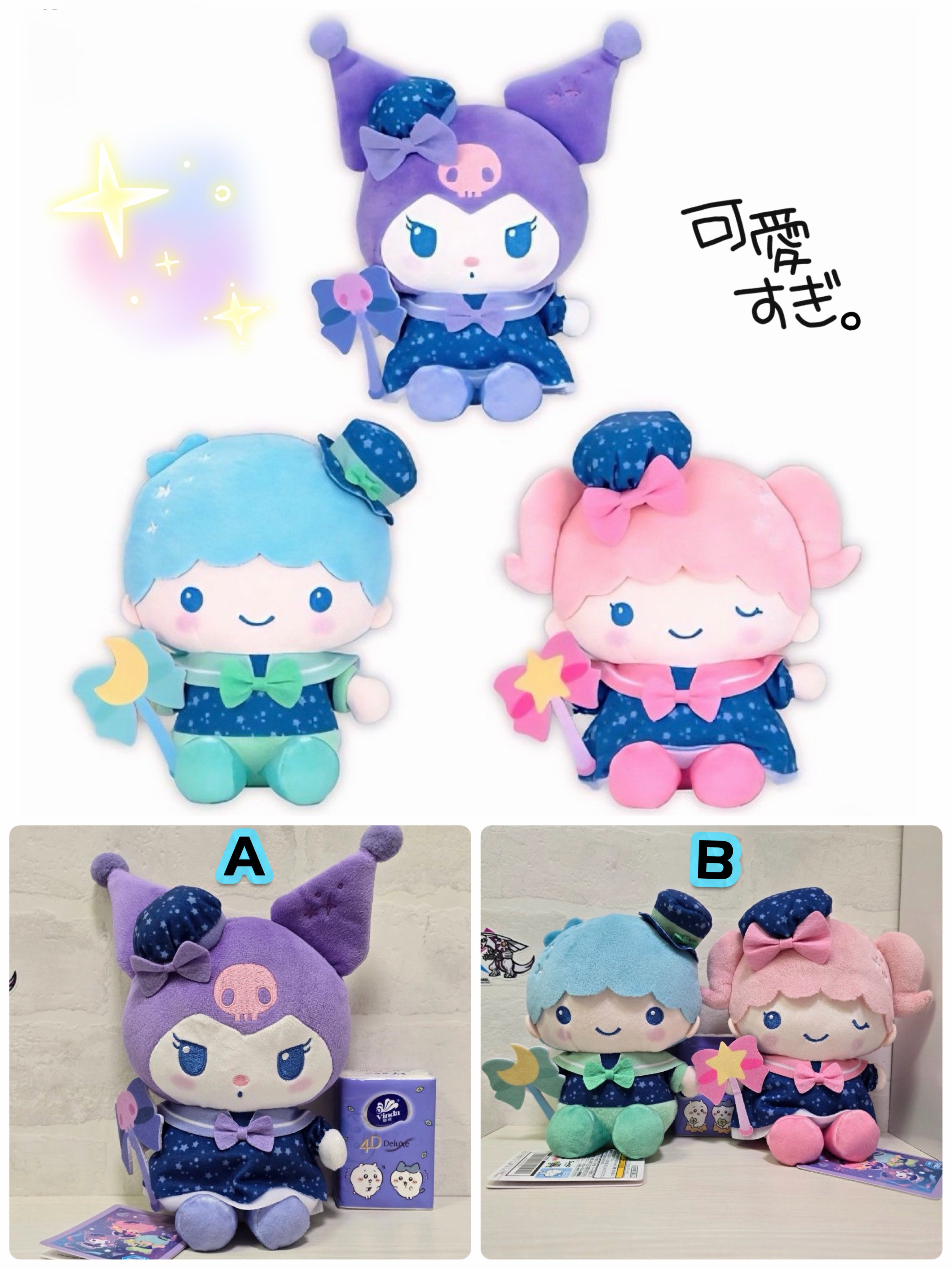 《虎舅現貨玩具精品專區》 ☆現貨☆日本直送 Sanrio 魔法棒Kuromi Little Twin Stars 公仔 A:Kuromi HK$55/隻 B:Little Twin Stars HK$105/對 尺寸:約16cm 備註: ❗️順豐到付 (順豐現時做緊店到店優惠,詳情歡迎向我哋或順豐查詢) 如欲在網站購買,可到: https://www.torameheya.store/i/Xgt1urgAA
