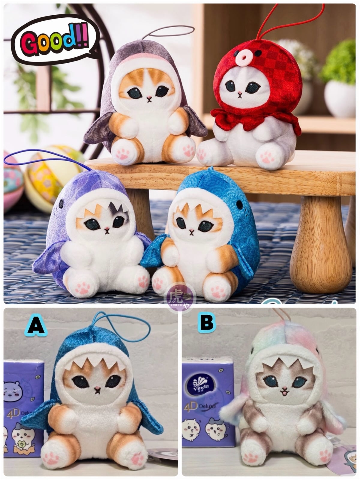 《虎舅現貨玩具精品專區》 ☆現貨☆日本直送日式花紋mofusand鯊魚貓公仔吊飾 HK$58/隻 共2款: A:藍色 B:粉彩色 尺寸:高約10cm 備註: ❗️順豐到付 (順豐現時做緊店到店優惠,詳情歡迎向我哋或順豐查詢) 如欲在網站購買,可到: https://www.torameheya.store/i/Rg2E7rgAA