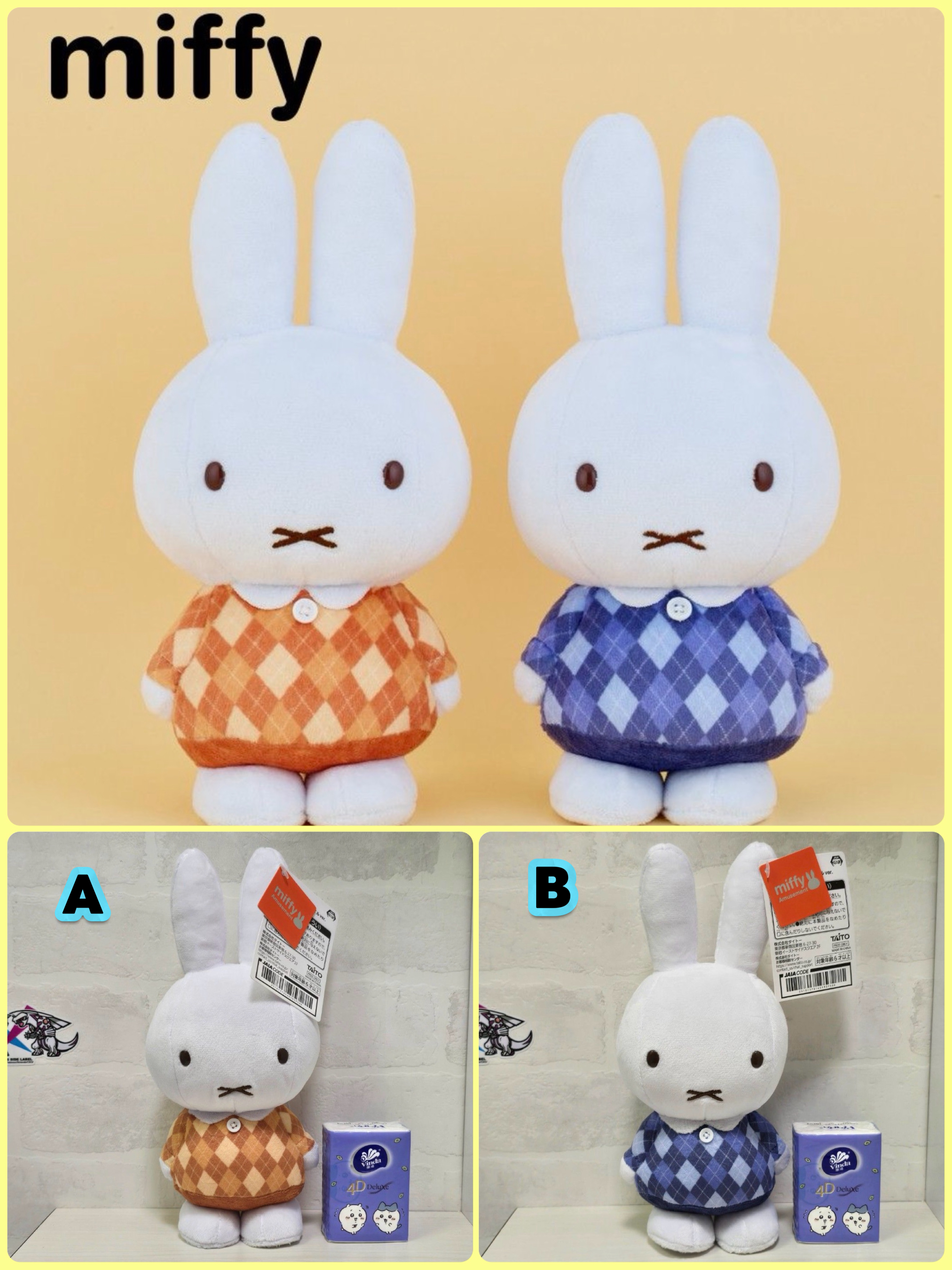 《虎舅現貨玩具精品專區》 ☆現貨☆日本直送 Miffy兔菱形格仔衫公仔 HK$65/隻 共2款: A:橙黃色 B:紫藍色 尺寸:約24cm 備註: ❗️順豐到付 (順豐現時做緊店到店優惠,詳情歡迎向我哋或順豐查詢) 如欲在網站購買,可到: https://www.torameheya.store/i/RpF6trgAA